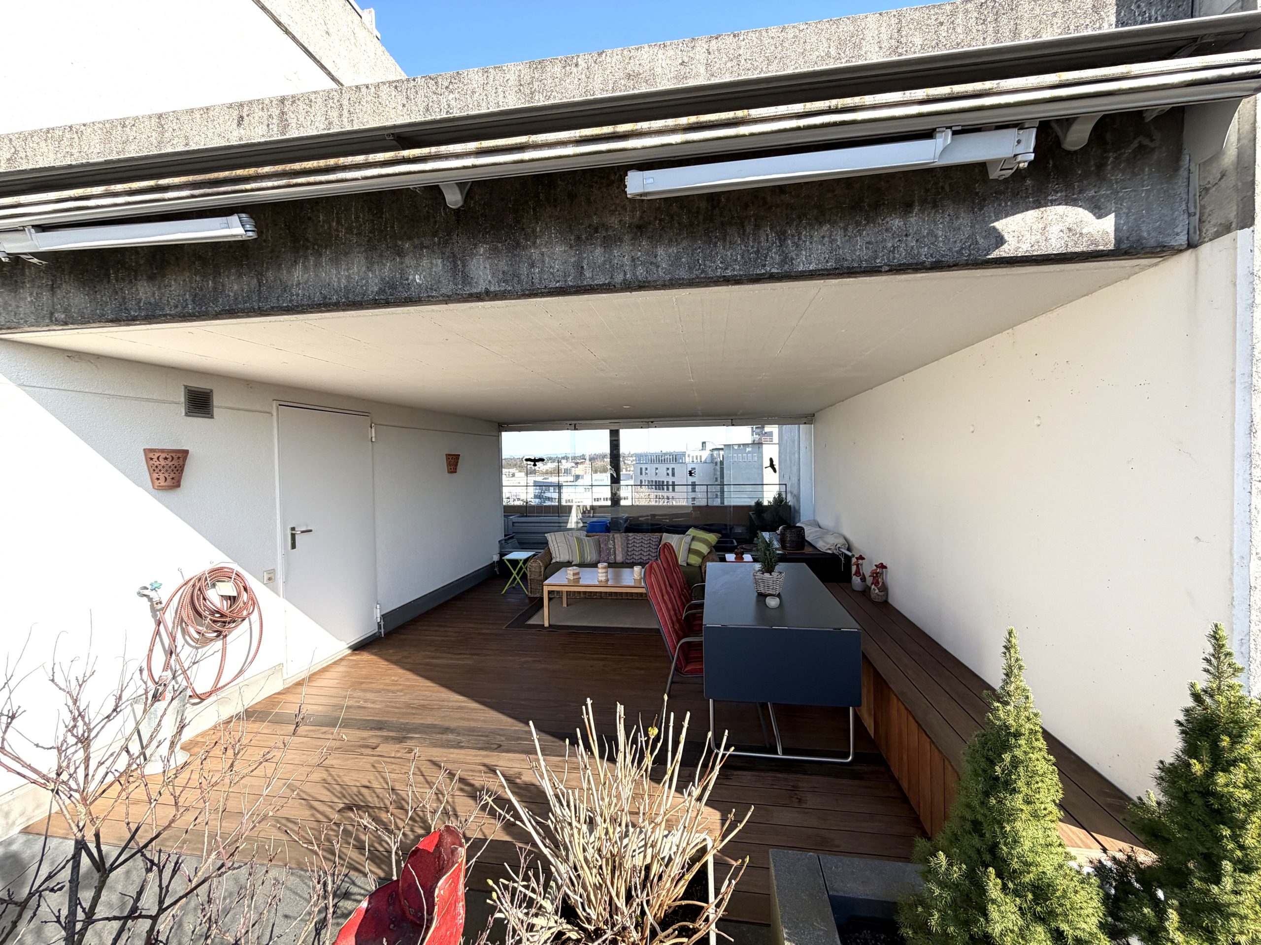 • Grosse Dachterrasse (ca. 71 m2) mit überdachtem Sitzplatz
