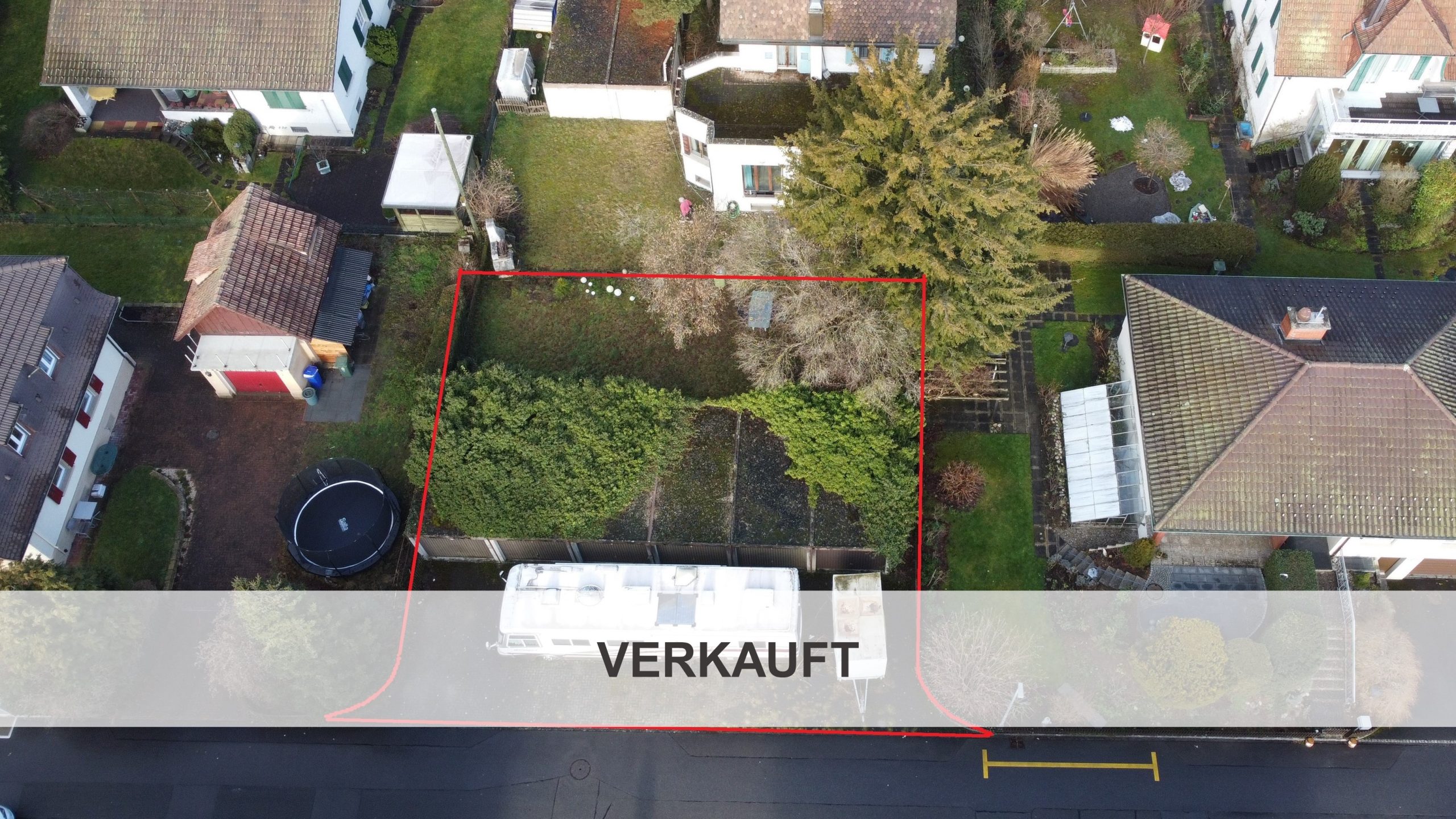 Die Bebaubarkeit dieser Parzelle wird optimiert mit bestehenden Grenzbaurechten für Kleinbauten zur Ost- und Westgrenze.